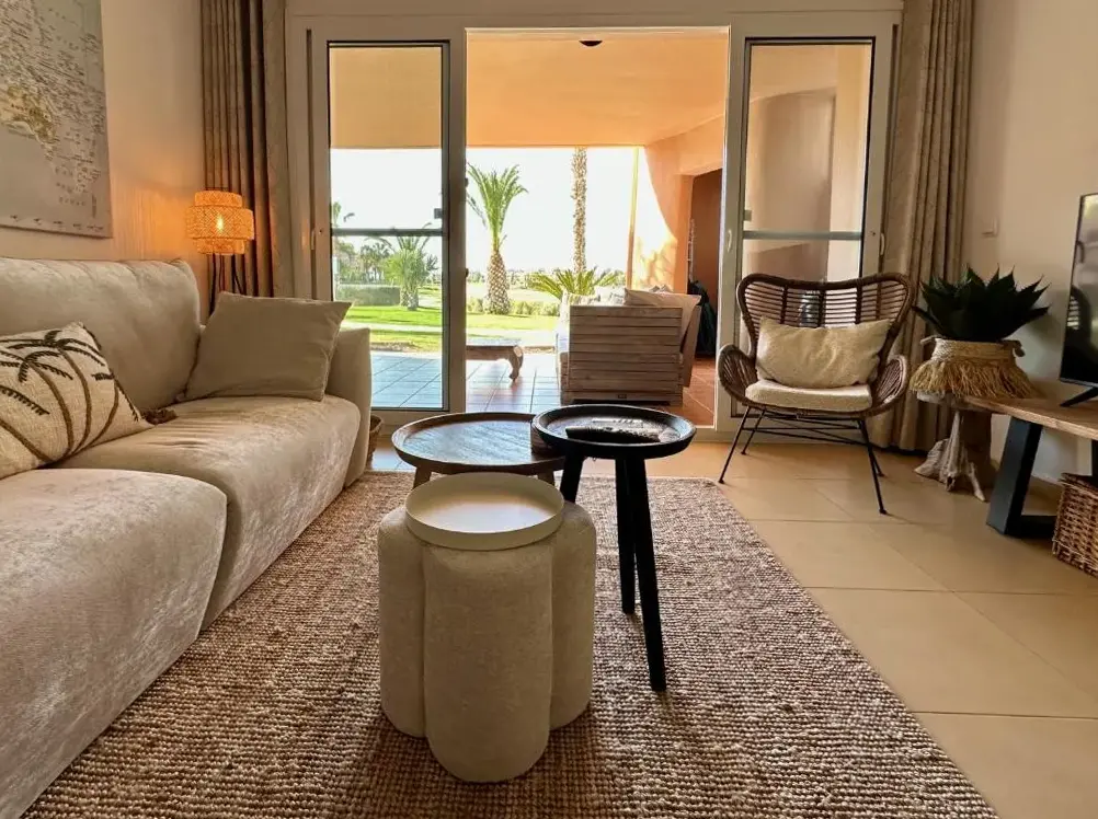 Sonrisa Garden - Mar Menor Golf Resort se encuentra situado en Calle Espliego, 30700 Torre-Pacheco, España. Este establecimiento ofrece una amplia gama de instalaciones para garantizar una estancia confortable y placentera. Entre sus servicios destacan dos piscinas, un gimnasio, un spa, un bar y conexión WiFi gratuita. Además, proporciona aparcamiento gratuito y habitaciones diseñadas con atención al detalle, todas ellas no fumatorias. Los huéspedes pueden disfrutar de la proximidad a diversos lugares interesantes, incluyendo la playa de Las Palmeras a solo 6 kilómetros o el Parque de la Rosa a 15 kilómetros. También hay opciones gastronómicas cercanas como el Restaurante Fontana di Pietra a 350 metros y el Bar los Olmos a 1.6 kilómetros. Las opiniones recibidas resaltan la limpieza del lugar, la hospitalidad de los dueños y la comodidad de las instalaciones.